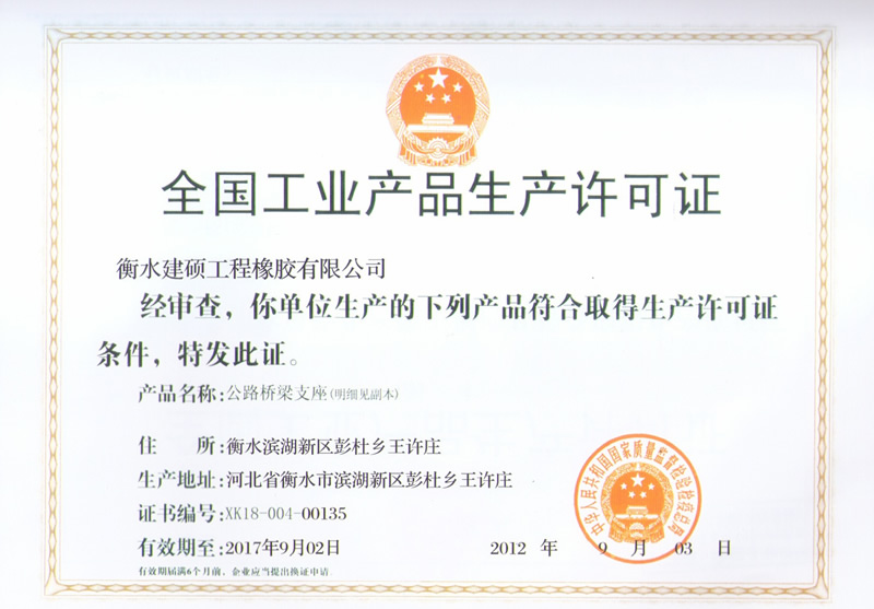 公司擁有一批高素質(zhì)的管理、科技人才和一直精干的營銷、服務(wù)隊(duì)伍,生產(chǎn)設(shè)備先進(jìn),制做工藝合理,檢測(cè)設(shè)備精良,檢測(cè)手段完善,公司已通過ISO9001:2000質(zhì)量管理體系認(rèn)證,取得了公司橋梁支座產(chǎn)品生產(chǎn)許可證和橡膠密封制品產(chǎn)品生產(chǎn)許可證...